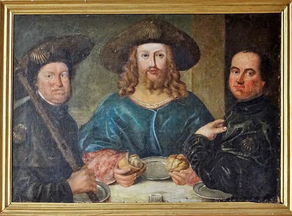 Les disciples d’Emmaüs et le Christ avec des coquilles. Ce tableau est de 1884, il fut offert par le baron Charles Georges de Heeckeren alias Anthès, il est enterré au cimetière de Soultz-Haut-Rhin. C’est lui qui tua Pouchkine en 1837 à Moscou, lors d’un duel provoqué par ce dernier.